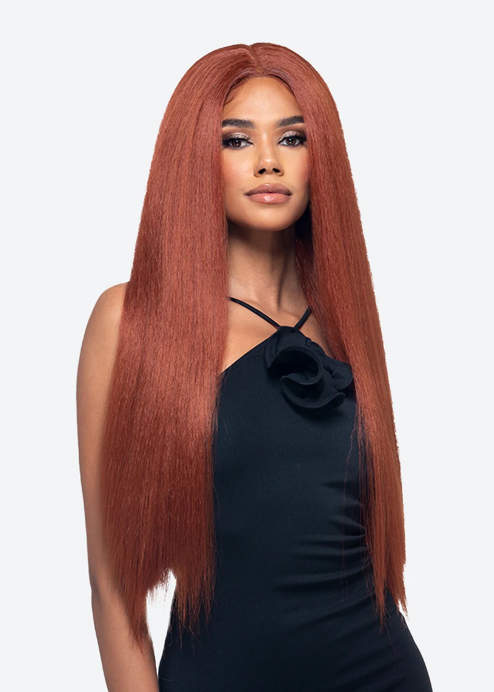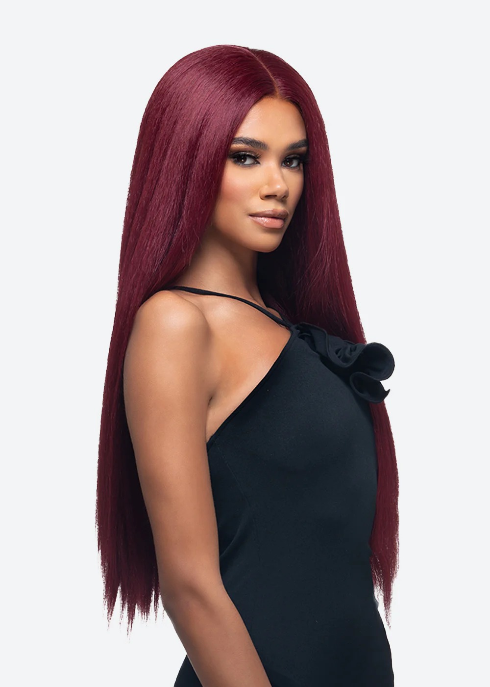 HUMAN HAIR BLEND 28″ LAYERED STRAIGHT W/INVISIBLE CENTER PART